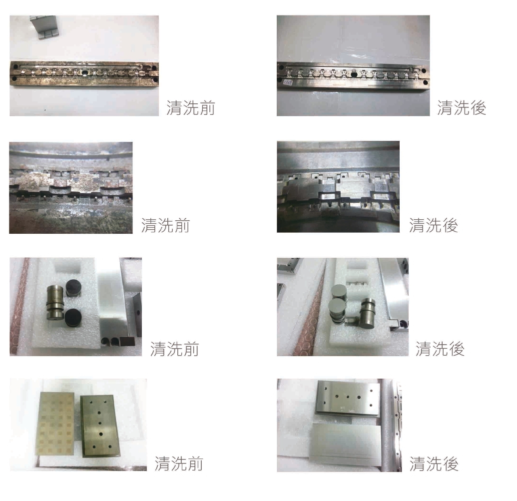 適用於各類樹脂、聚酯、橡膠及塑料等之金屬模具清洗。